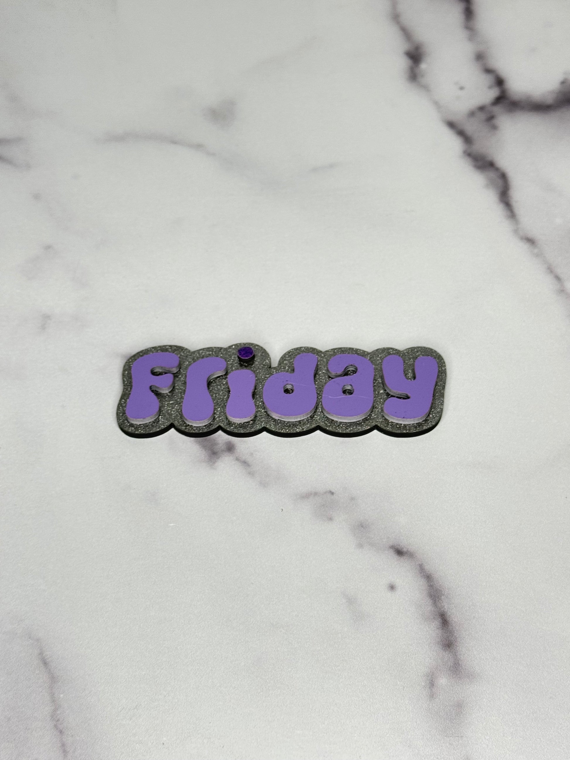 Stay on top of your week with these colorful acrylic day of the week magnets. Each set includes 5 days in bold, easy-to-read colors with a silver glitter backing for extra shine. Perfect for teachers, parents, and planners who want a little style with their structure.