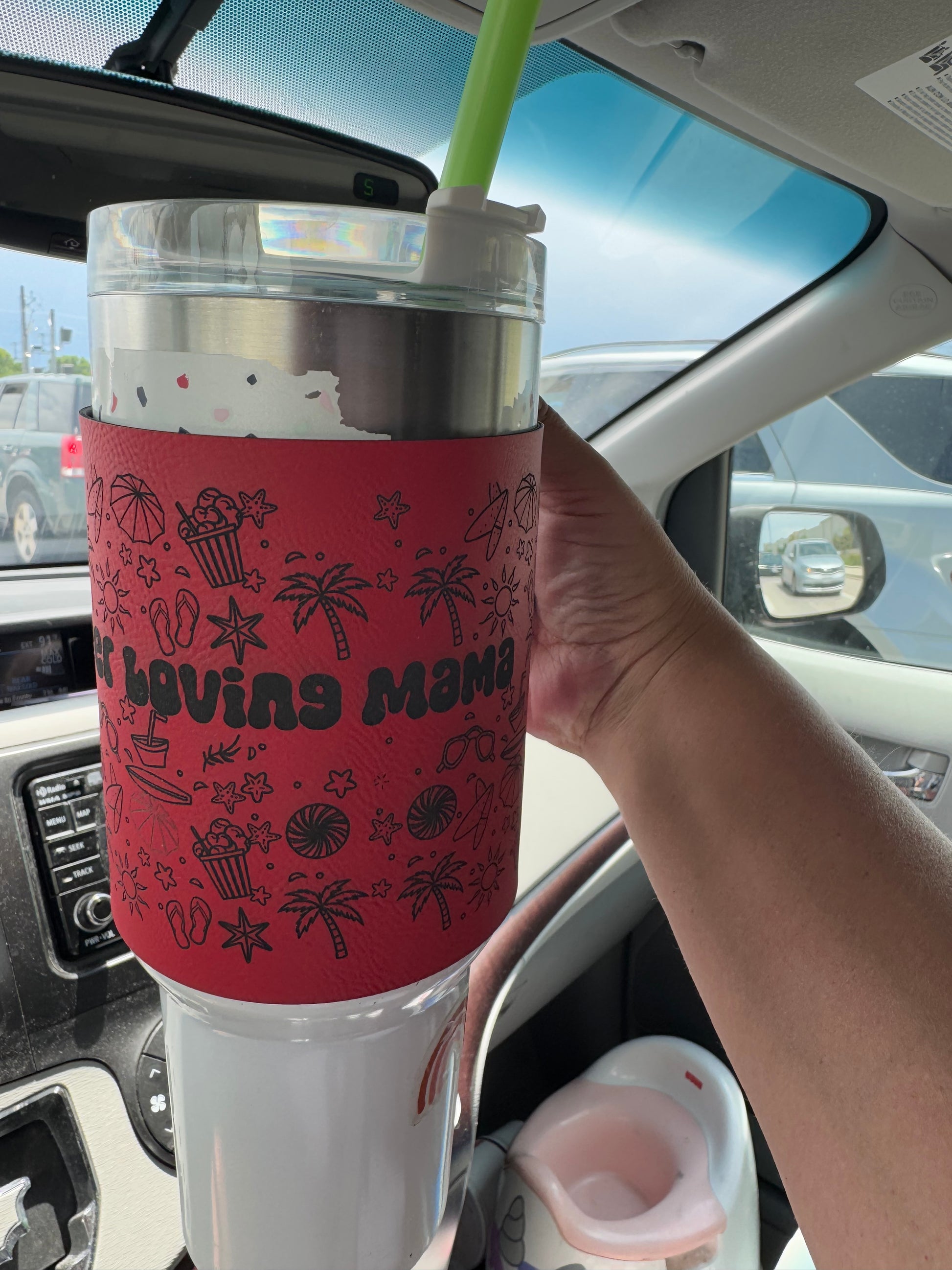 Give your water bottle a glow-up with our faux leather sleeve designed just for busy mamas. Featuring the sunny “Summer Loving Mama” design, this stylish wrap fits both 40oz and 20oz bottles and adds instant personality and grip to your favorite drinkware.