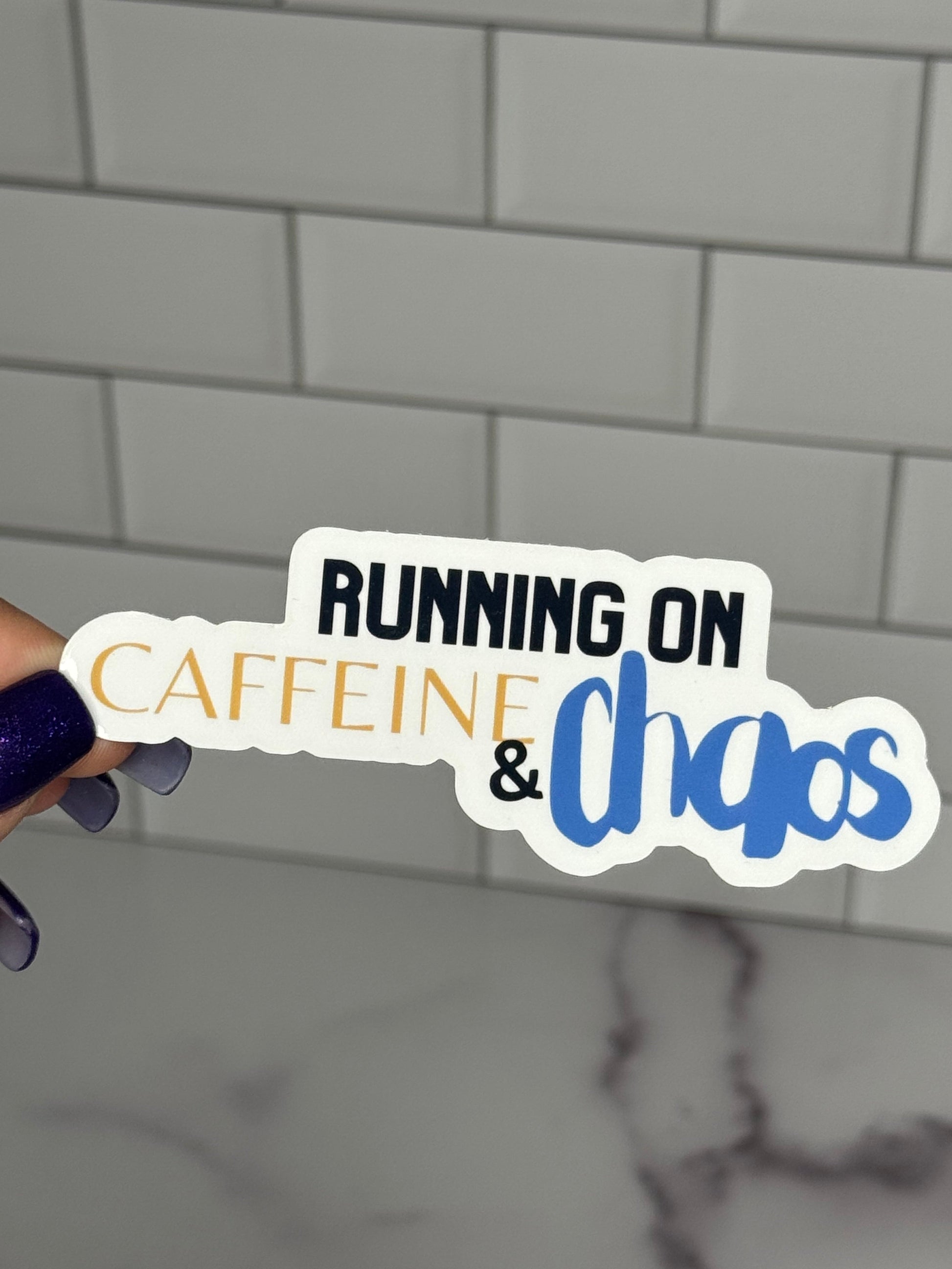 For moms, students, teachers, and anyone surviving life one cup of coffee at a time — this "Running on Caffeine and Chaos" vinyl sticker is a badge of honor. Waterproof and dishwasher safe, this durable decal comes in matte, glossy, or holographic finishes and adds a fun, chaotic vibe to tumblers, laptops, planners, and more.